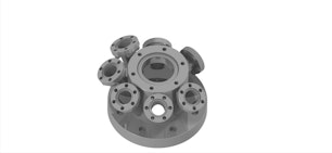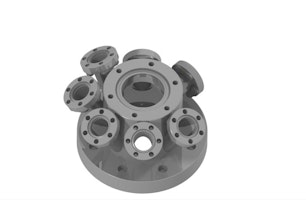 Multiport chamber for electrical feedthroughs with 1xDN63CF, 1xDN40CFT, 2xDN16CF and 5xDN16CF at 30deg.