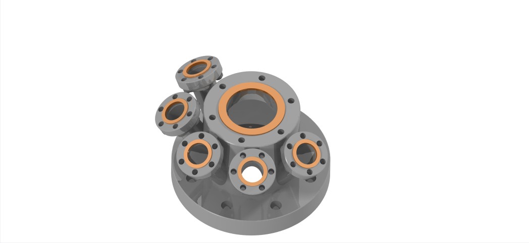 Multiport chamber for electrical feedthroughs with 1xDN63CF, 1xDN40CFT, 5xDN16CF at 30deg.