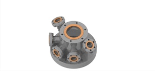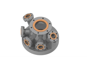 Multiport chamber for electrical feedthroughs with 1xDN63CF, 1xDN40CFT, 3xDN16CF and 2xDN16CF at 30deg