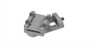 The revolving sample carrier transports and stores two Flag Style Sample Plates in specially designed "flat" receivers. The sample plate surfaces are not in-axis with the manipulator in this version, to reduce the size of the sample carrier.