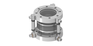 Two DN63CF flanges with through holes connect an edge-welded bellows unit.