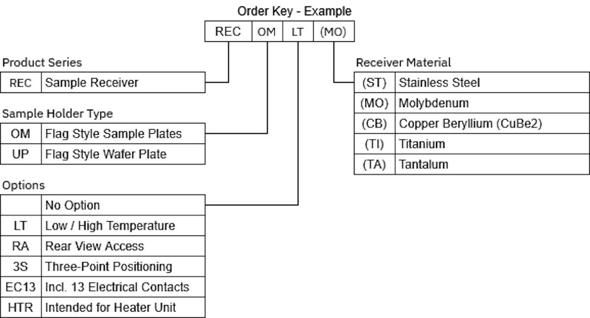 - HTR - Heater Unit: The receiver is adapted to enable the direct mounting onto a sample heater (usually a PBN heating unit).
