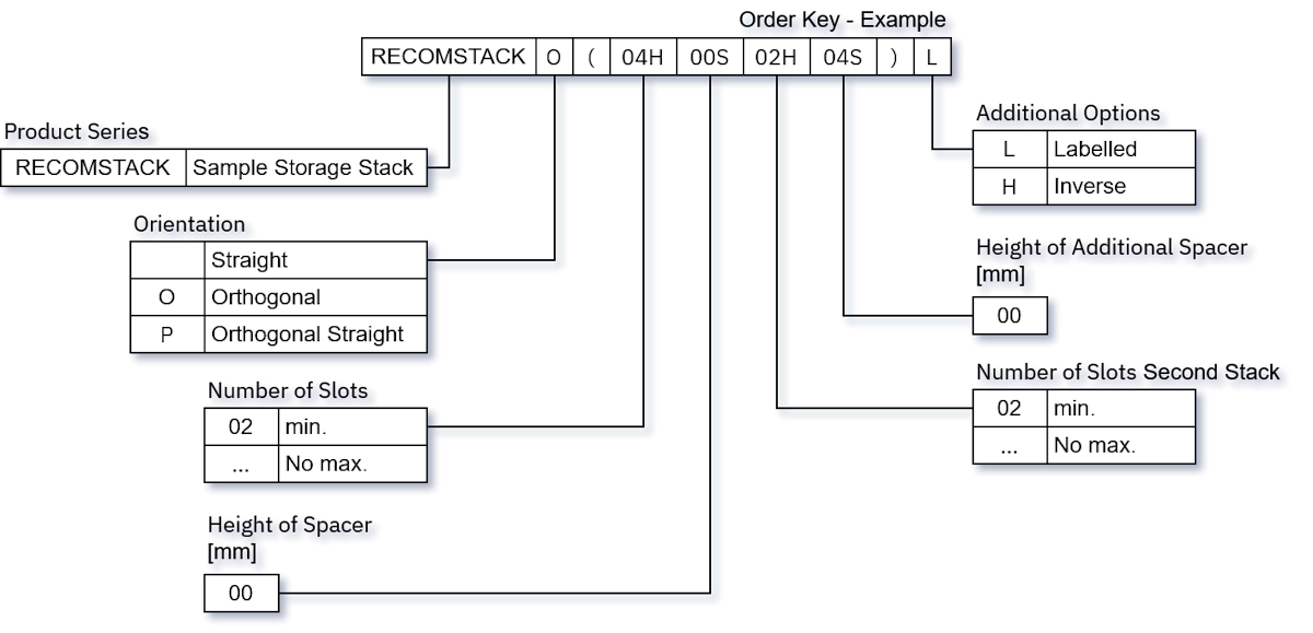 - RECOMSTACKO(03H00S)L: 3x slots without spacers, orthogonal access, labelled