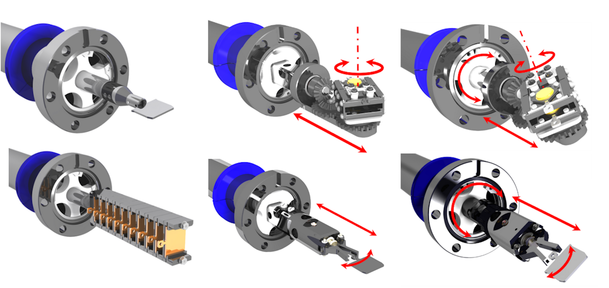 HS Option - Hollow Shaft: For applications that require a lighter build or reduced thermal conductivity, this option replaces the standard shaft of the sample transporter with a tubular shaft. One typical application for this design is the sample insertion into cryogenic SPM systems.