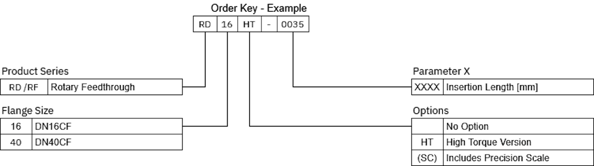 Ferrovac rotary feedthroughs are available for DN16CF and DN40CF mounting flanges.