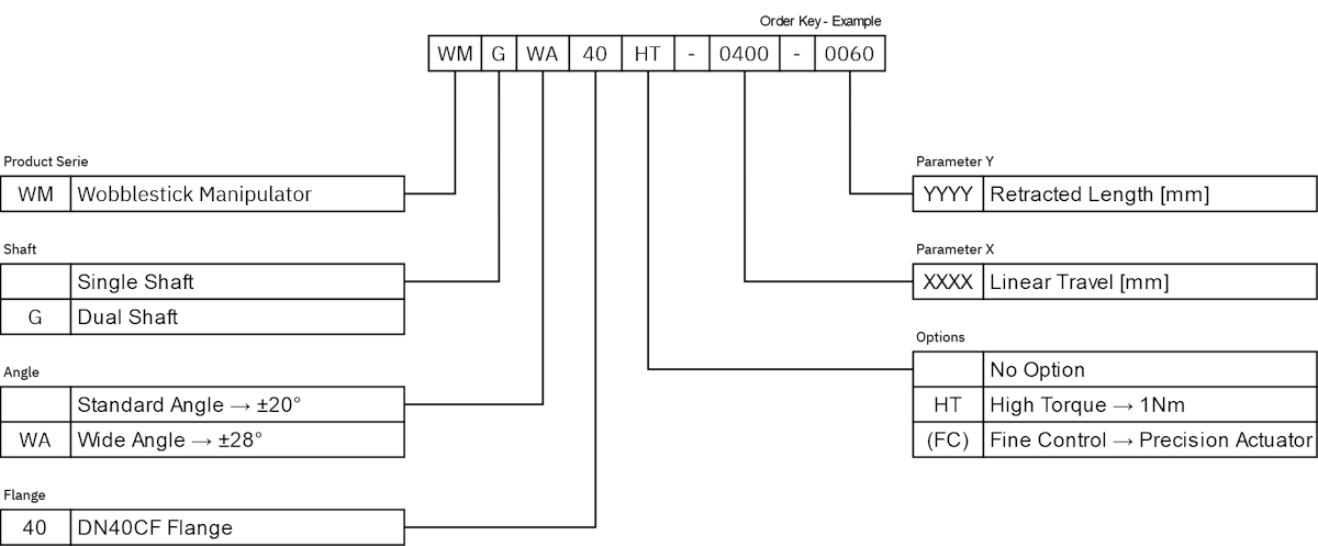 (FC) Option (Fine Control): (Dual-shaft only) Replaces the standard handle with a High Precision Rotation Actuator, enabling finer dual-shaft operation for high-accuracy tasks.